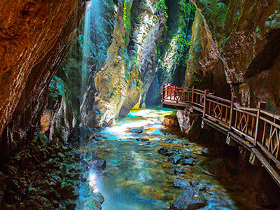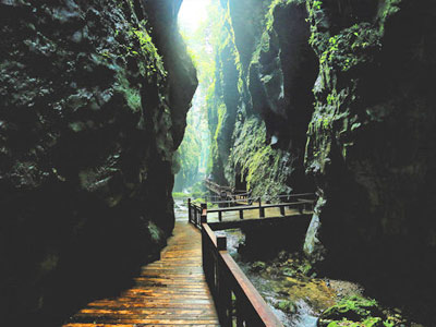 張家界朝陽地縫景區(qū)地處慈利縣朝陽境內(nèi),全長(zhǎng)5公里,垂直深度近200米。朝陽地縫為趙家埡庫(kù)區(qū)流水經(jīng)幾億年沖刷而形成的100多米深的崖縫,兩崖最窄處僅一米多寬,景色集奇、秀、險(xiǎn)、野、幽于一體。景區(qū)內(nèi)溪水清澈,空氣清新,冬暖夏涼,四季如春,是旅游觀光、避暑休閑、考察探險(xiǎn)的好去處。